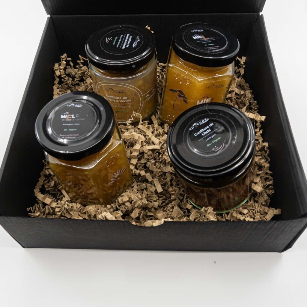 Contenu du Coffret : 2 miels Bio du moment et 2 confitures Bio du moment.